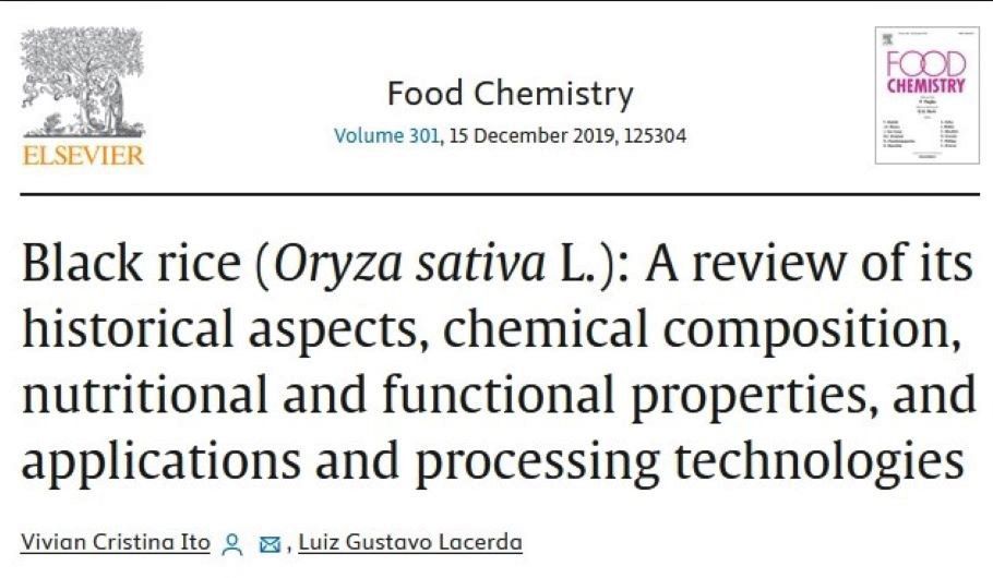 “Black rice … contains numerous nutritional and bioactive components, including essential amino acids, functional lipids, dietary fibre, vitamins, minerals, anthocyanins, phenolic compounds, γ-oryzanols, tocopherols, tocotrienols, phytosterols and phytic acid. There have been several studies of black rice due to its alleged beneficial health effects when consumed regularly. This review focuses on the historical aspects, chemical composition, and nutritional and functional properties of black rice.”