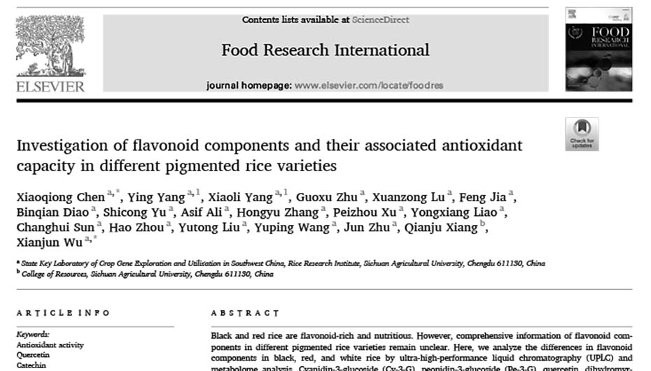 Investigation of flavonoid components and their associated antioxidant capacity in different pigmented rice varieties